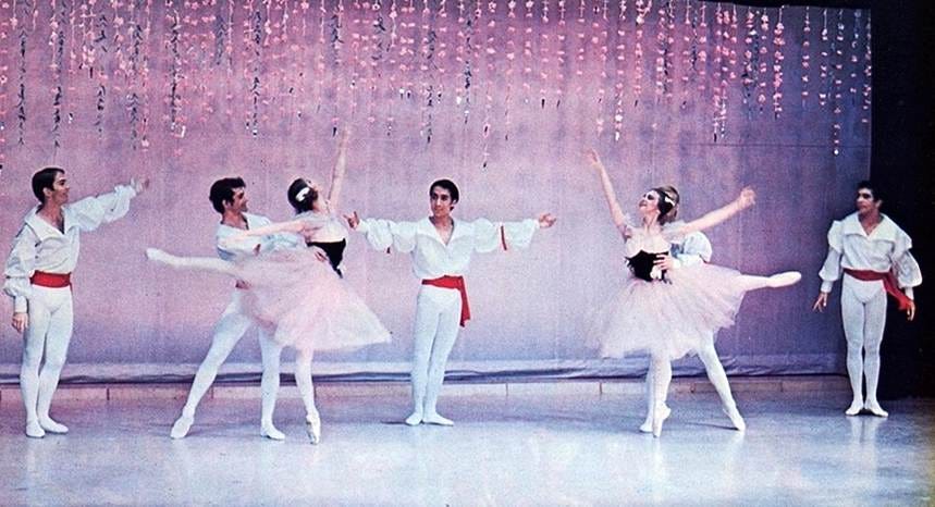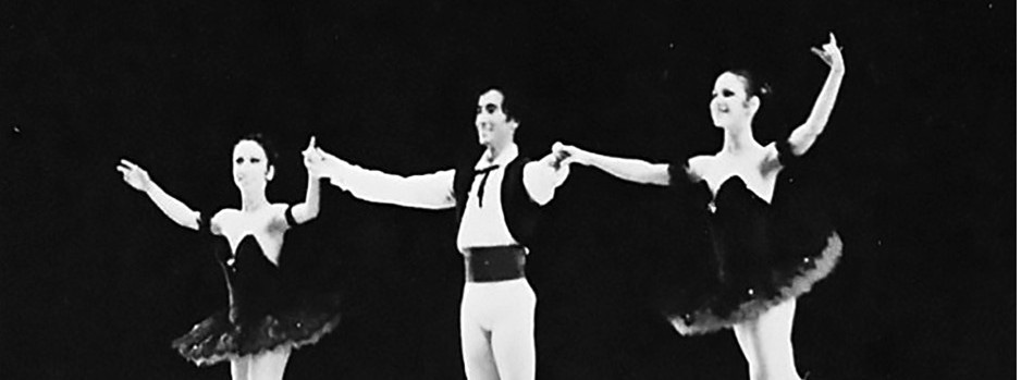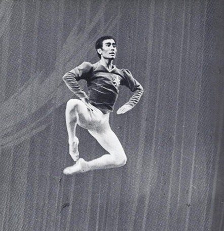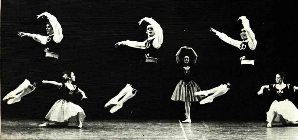 Finis: By the time you saw me perform in Nice, I was in peak form thanks to early teachers like W.Christensen, Mme. Pereyaslavec, Joffrey, Mme Volkova, Stanley Williams, and Ben Harkarvy. In 1965-66, Erik Bruhn (my inspiration and role model) mentored me, allowing me to watch him make up and warm-up. From 1967 on, David Howard was our company teacher, my personal coach, gave me private lessons, and notes after every performance. In Barcelona, 1966, I converted to Nichiren Buddhism (Nam-myoho-renge-kyo) I received all that I prayed for: Brief Biography in Dance Magazine, promotion to principal dancer, only dancing “white tights” ballets, and overcoming my double tour nightmare. By the time we were in residence in Monte Carlo, 22 members of the Harkness Company were chanting and happier than ever. In 1968 while relaxing at the pool in the Monte Carlo casino, I had my “Red Shoes” moment (when Moira Shearer ends her life jumping off the balcony.) I was sunning near that very same balcony and suddenly decided I too would end my life - in ballet – not by jumping (!) but by quitting ballet and devoting my life to achieving World Peace through NSA (Nichiren Shoshu of America). In January 1969, I resigned from the Harkness Ballet. (Variations for Four by Anton Dolin. Photo by Fred Fehl, Courtesy of Gabriel Pinski)